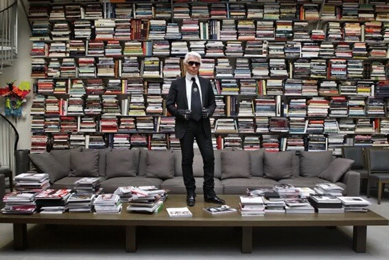 Obok projektowania Lagerfeld lubił przesiadywać w paryskich kawiarniach i księgarniach, w których kupował kilka książek tygodniowo. Obok mody były one jego największą pasją. W ciągu swojego życia zgromadził 300 tys. książek, wśród nich wiele albumów mody i sztuki, ale i tomów wierszy, które chętnie czytał. – Najlepsze są weekendy, kiedy mogę poczytać książki, które kupiłem w czasie tygodnia – opowiadał Lagerfeld – przerzucać strony, czytać, notować, pomarzyć, coś narysować i zdrzemnąć się i w ogóle nie wiedzieć, która godzina.