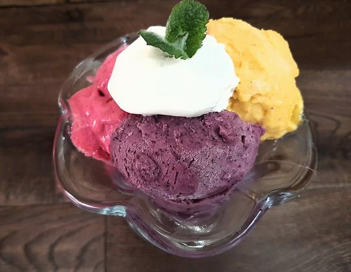 Bazą dla moich sorbetów jest banan, a oprócz niego maliny, jagody i mango i jogurt.