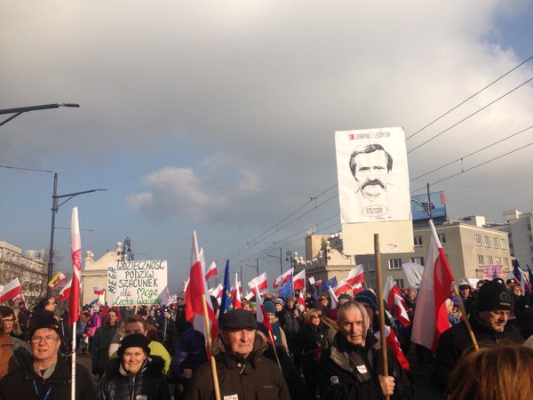 Na manifestacji nie pojawił się Lech Wałęsa. - Nie wezmę udziału w manifestacji. Jestem z nimi duchem. W manifestacje włączę się może później. To nie jest jeszcze czas Wałęsy. Natomiast będę z nimi. To, co się dzieje w Polsce wymaga, by bronić wolności - powiedział dziennikarzom w niedzielę rano Lech Wałęsa. Były prezydent skomentował też sobotnią manifestacji KOD w Warszawie. - Cieszę się, że ludzie pamiętają o mnie, że jednak trochę mi wierzą, a nie wierzą w Kiszczaka i w bezpiekę; to mnie cieszy - dodał.