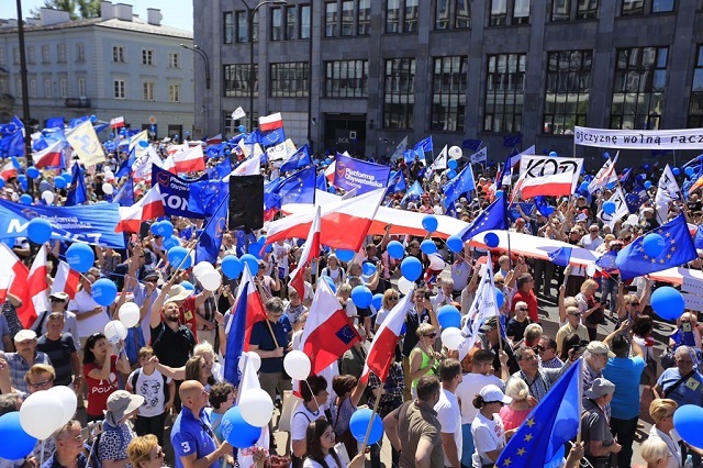 Dwa lata temu marsz opozycji i KOD "Jesteśmy i będziemy w Europie" zgromadził - według szacunków stołecznego ratusza - 240 tys. osób, według policji - w kulminacyjnym momencie wzięło w nim udział 45 tys. ludzi.