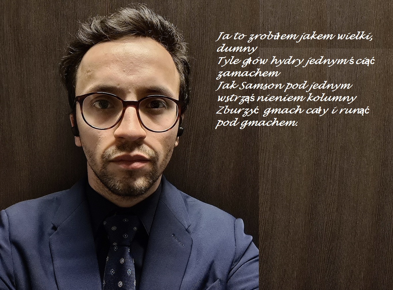 I chciałem Cię jeszcze młody człowieku przeprosić za te wszystkie złe myśli, które miałem o tobie uprzednio uważając cię za kanalię wysługującą się za nasze pieniądze reżimowi. Myślałem, że jesteś z obozu PiS, ale tym bohaterskim czynem, udowadniającym przestępczą działalność służb spowodowałeś, że zrozumiałem, żeś jest Konradem Wallenrodem! Masz prawo Samuelu stanąć i powiedzieć wszem i wobec za naszym, narodowym wieszczem:
