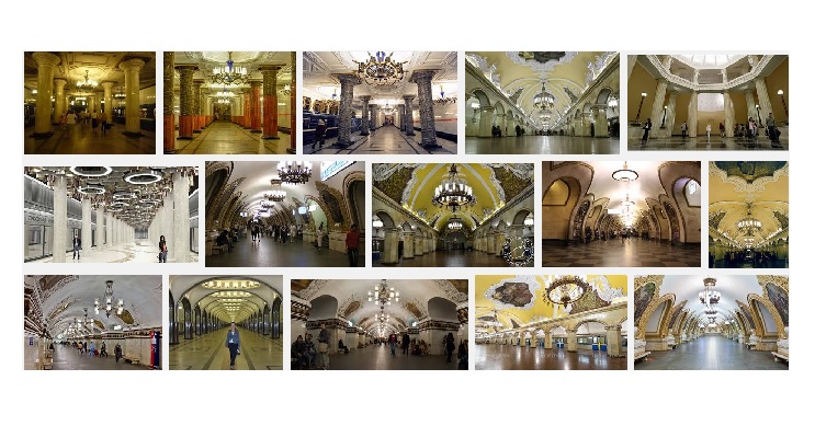 Stacja Kijewskaja - jest niezaprzeczalnie najpiękniejszą stacją moskiewskiego. Jej dekoracje przedstawiają sielankowe stosunki między Ukraińcami i Rosjanami. Jedną z najchętniej oglądanych mozaik na tej stacji jest „Walka o sowiecką władzę na Ukrainie”.