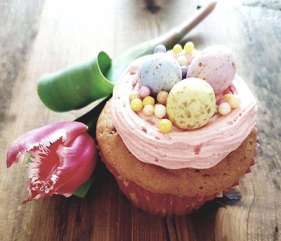 Z podanego poniżej przepisu, upiekłam 12 babeczek o smaku pomarańczowym. Całości dopełniła dekoracja z różowego maslanego kremu i świątecznych cukrowych jajeczek.