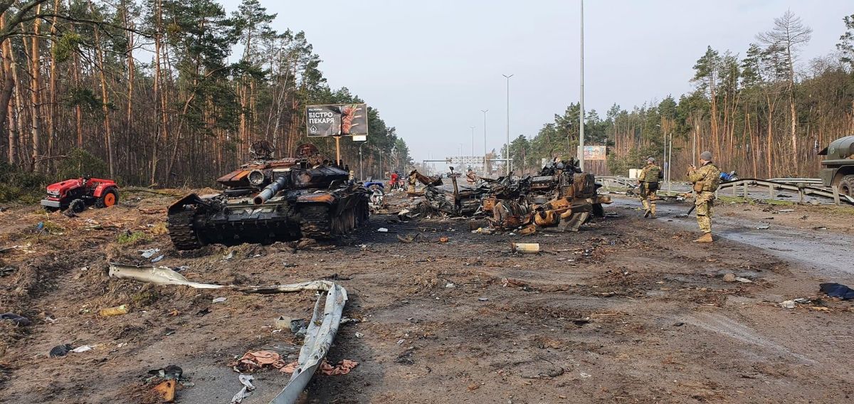 Po drodze widzieliśmy zniszczony sprzęt rosyjski, zniszczone domy, a w powietrzu unosił się dziwny, okropny zapach. Droga, którą jechaliśmy w kierunku Żytomierza, była z jednej strony przerwana, wszędzie znowu widać było zniszczony rosyjski sprzęt, pomiędzy podziurawionymi kulami cywilnymi samochodami. To była droga pełna grozy. Nie ma słów, by to opisać.