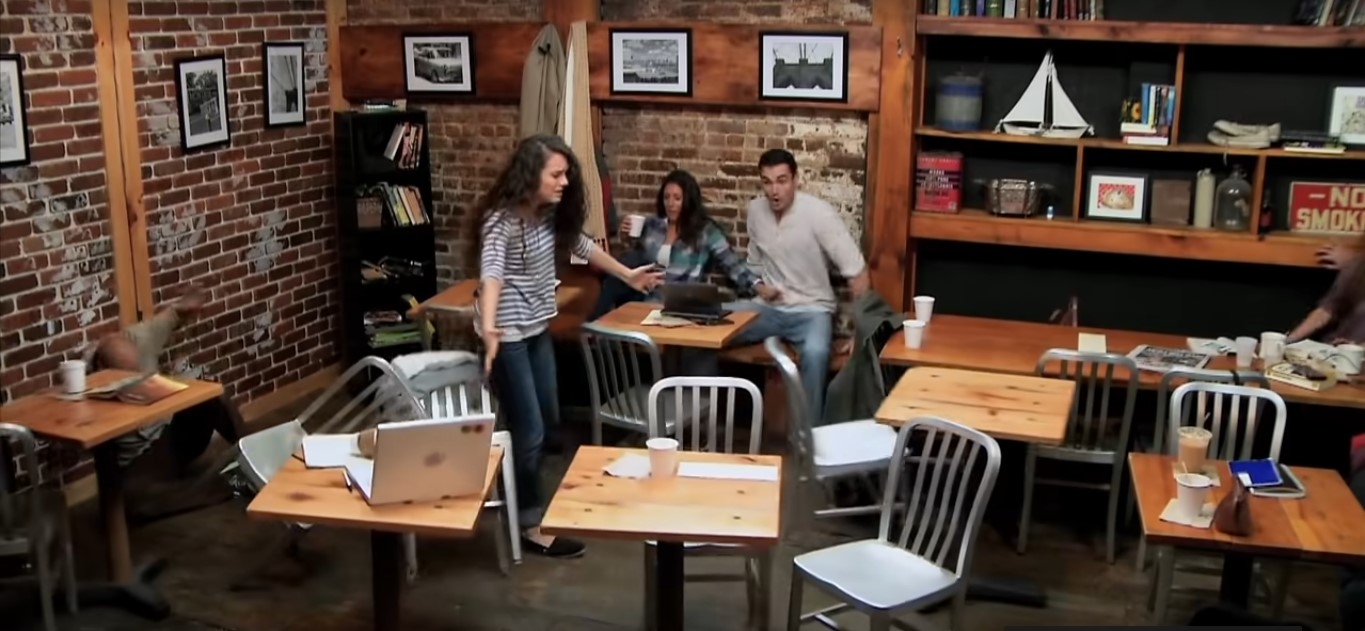 Ukryta kamera zarejestrowała reakcje niczego niepodejrzewających klientów nowojorskiej kawiarni, którzy stali się świadkami zdarzeń "telekinetycznych."