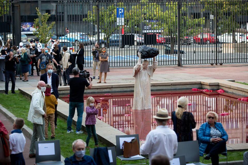 Rzeźba "Zatrute źródło" przedstawia Jana Pawła II wrzucającego czarny meteoryt do czerwonej wody. Pomysły na interpretację? https://t.co/lrXdK3EgkM